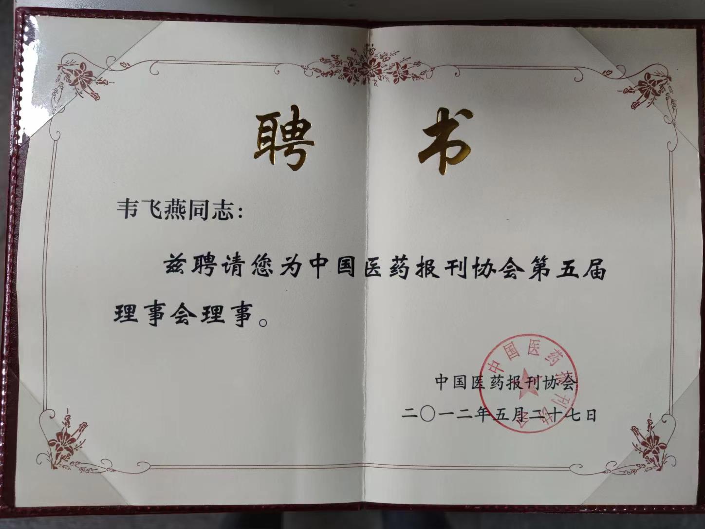 2012/05:韦飞燕董事长任中国医药报刊协会第五届理事会理事。