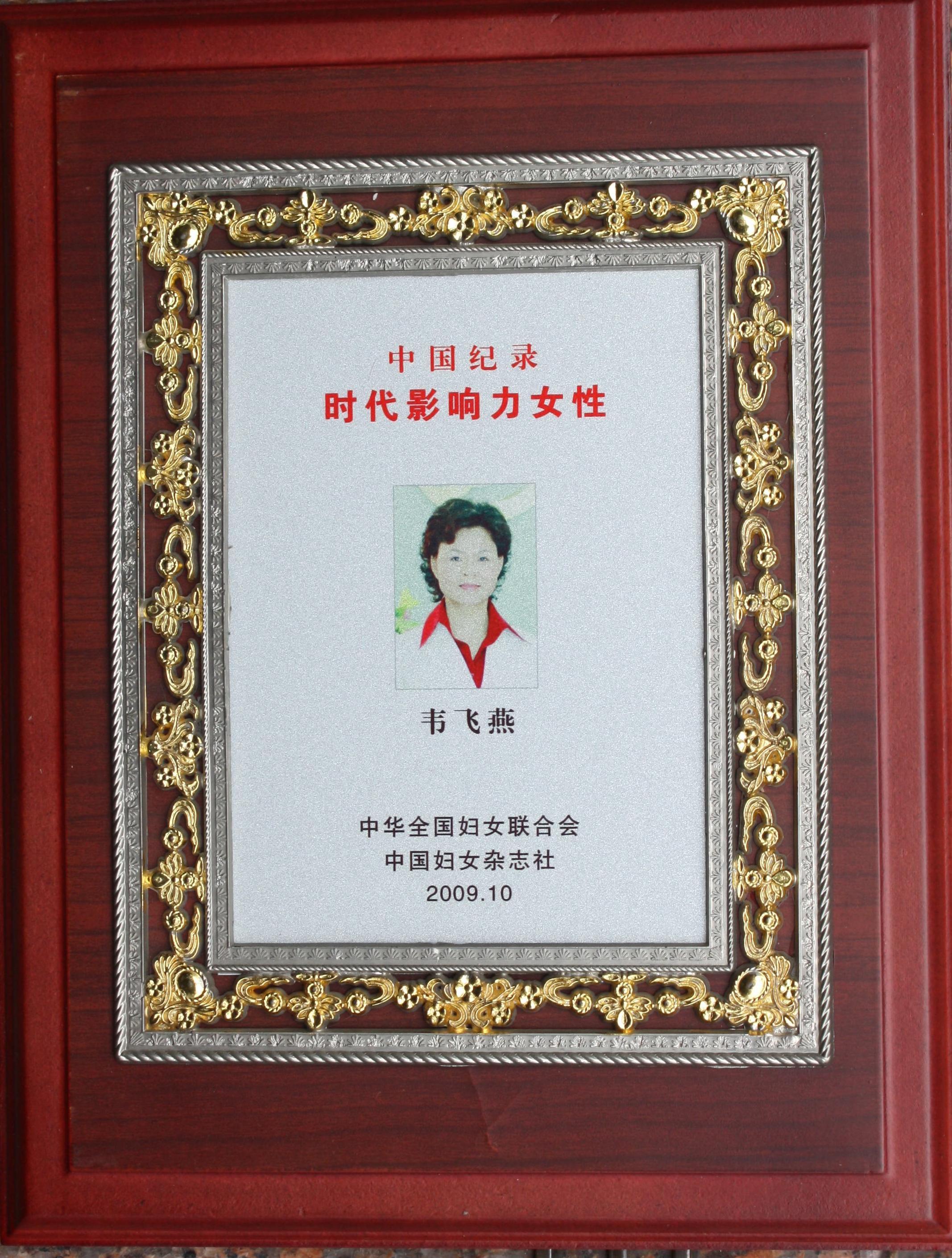 2009/06:韦飞燕董事长当选“影响中国发展进程的60位品牌女性”。