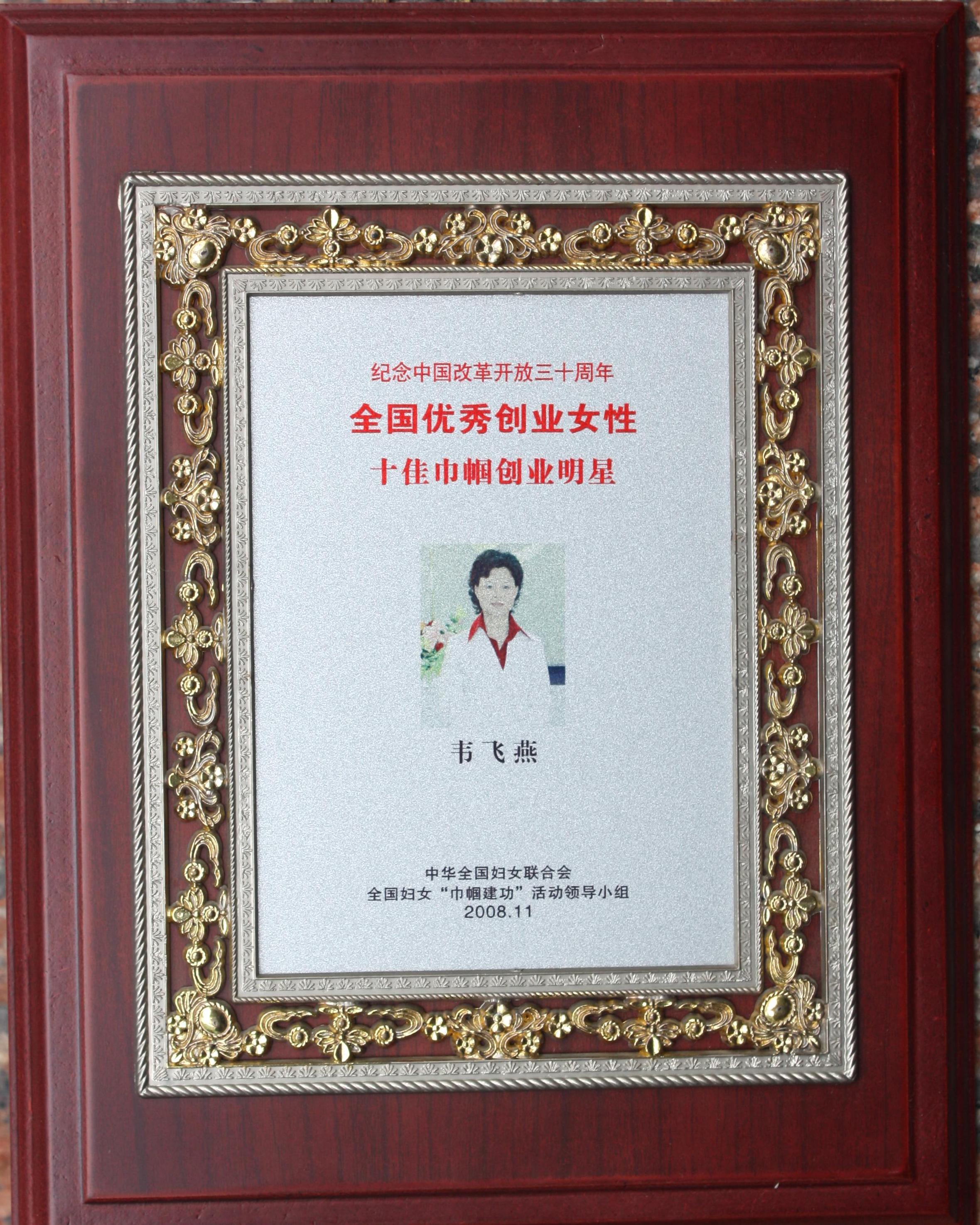 2008/11:韦飞燕董事长被授予“全国十佳巾帼创业明星”荣誉称号。