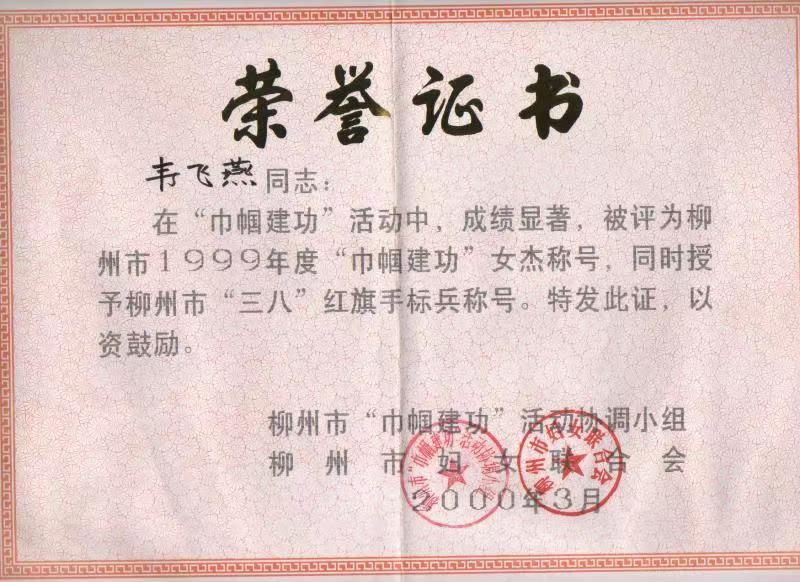 2003/04:韦飞燕总经理获得“柳州市劳动模范”称号。