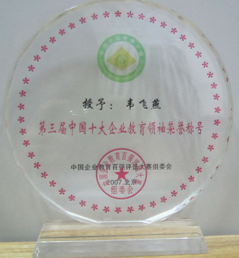 2007/07:韦飞燕董事长当选“第三届中国十大企业教育领袖”。