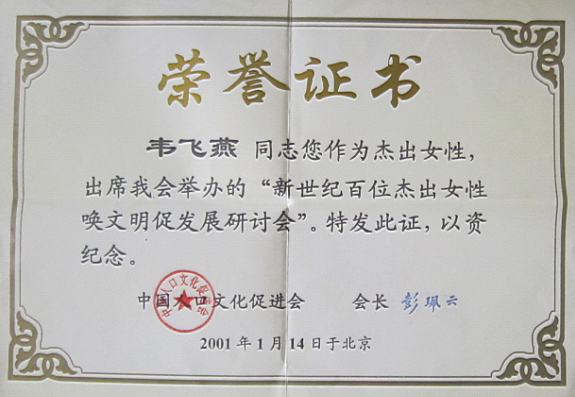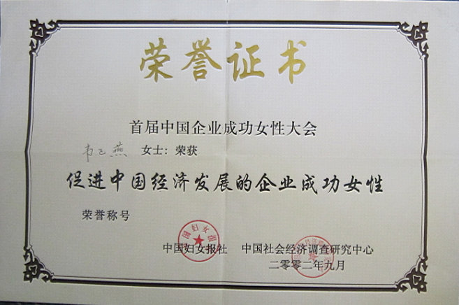 2002/09:韦飞燕厂长获得“促进中国经济发展的企业成功女性”称号。