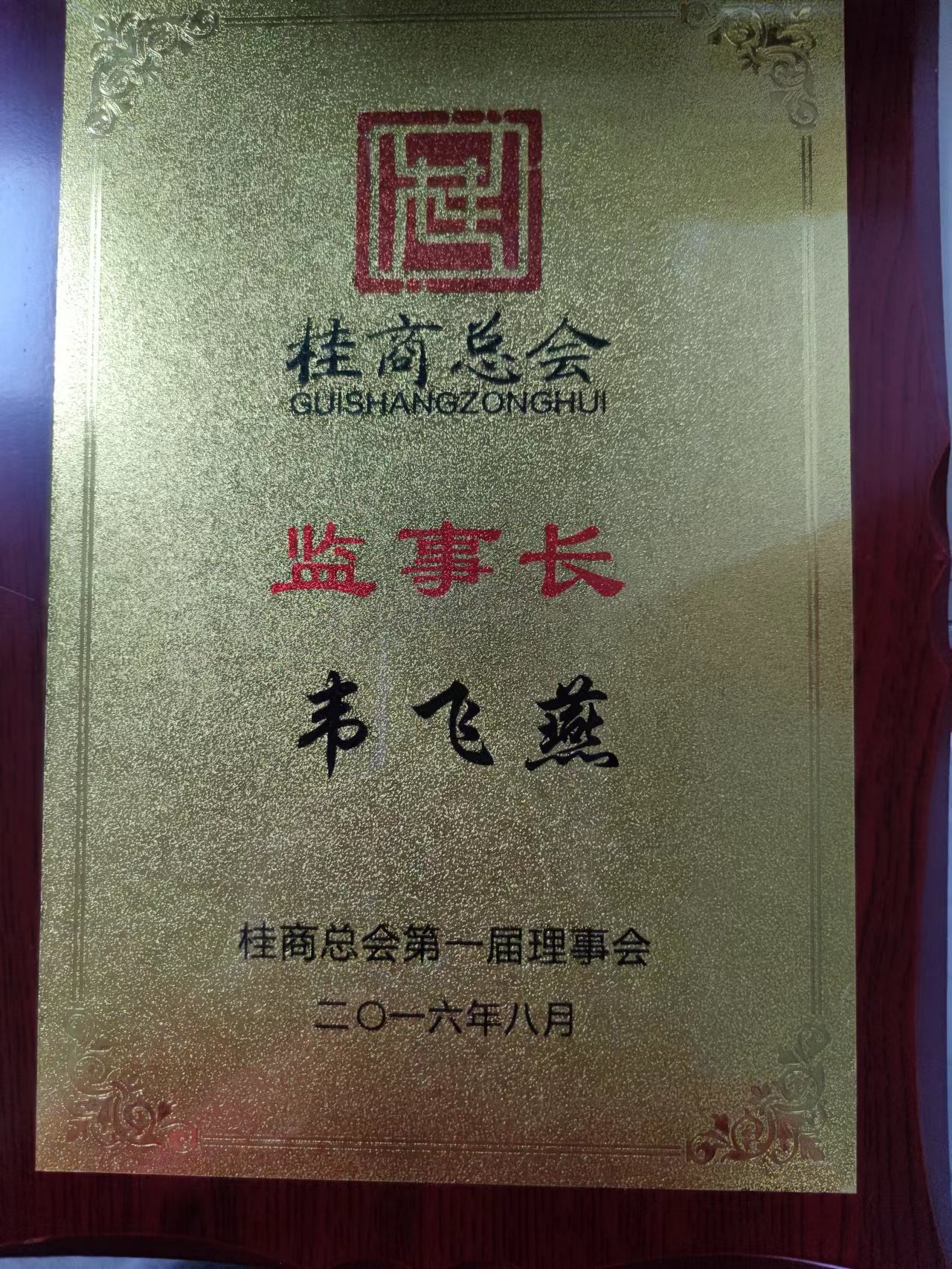 2016/09:韦飞燕董事长当选世界桂商总会监事长。
