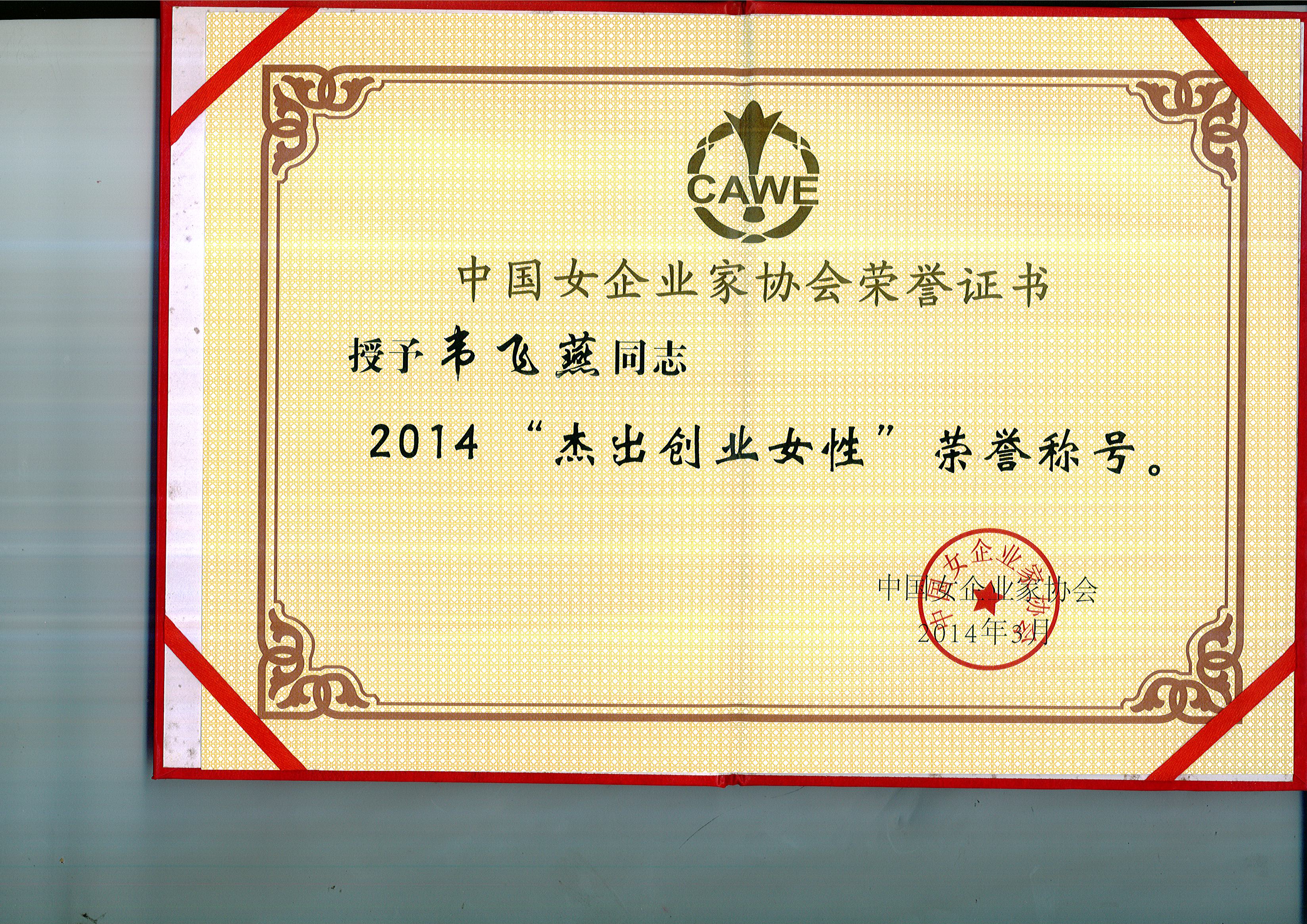 2014/03:韦飞燕董事长荣获“国家2014杰出创业女性”称号。