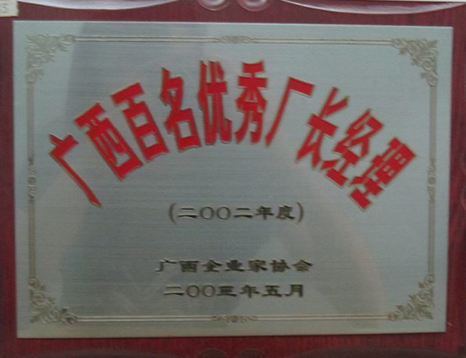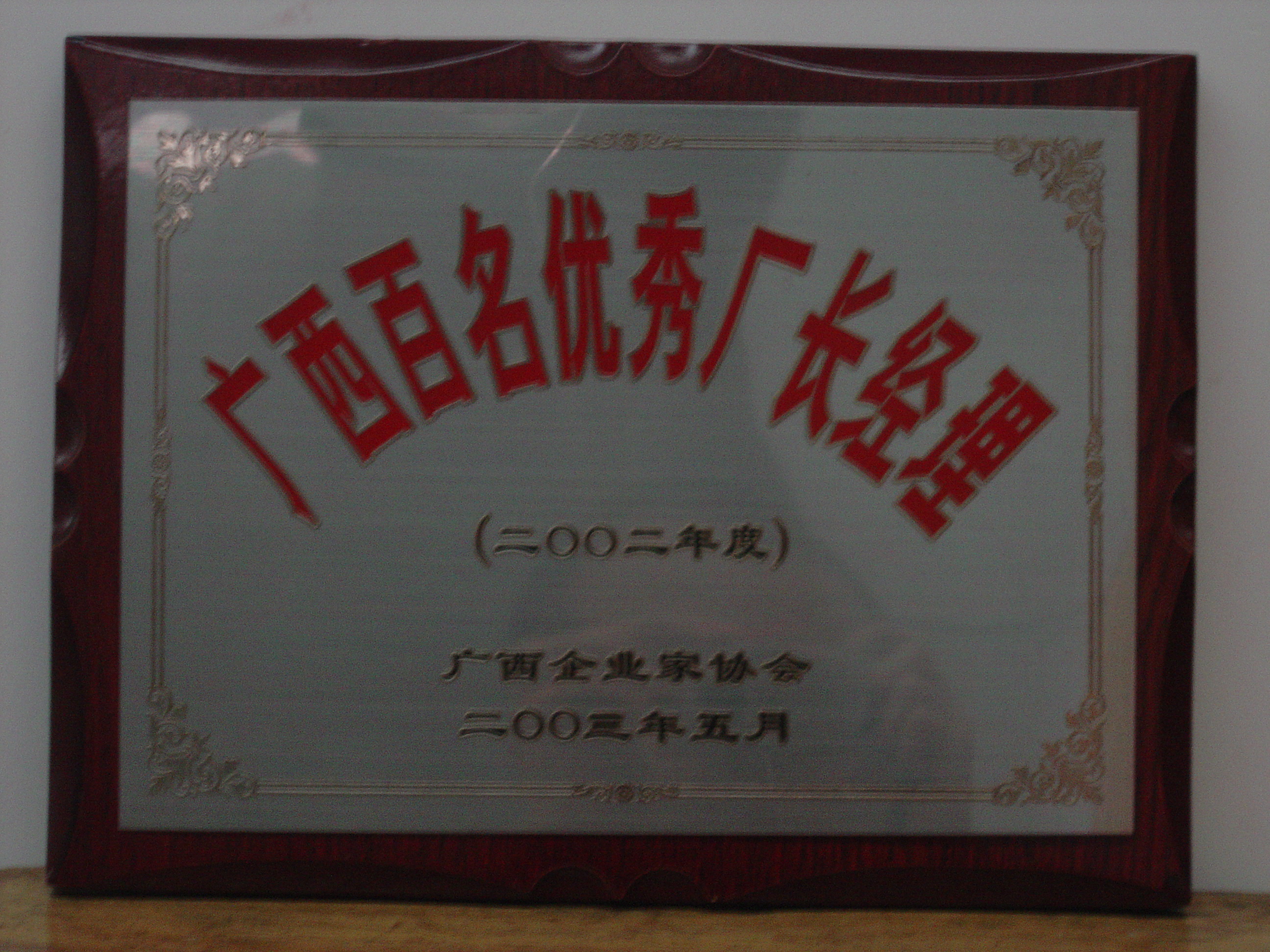 2002/01:韦飞燕厂长获得“广西十大杰出青年企业家”称号。