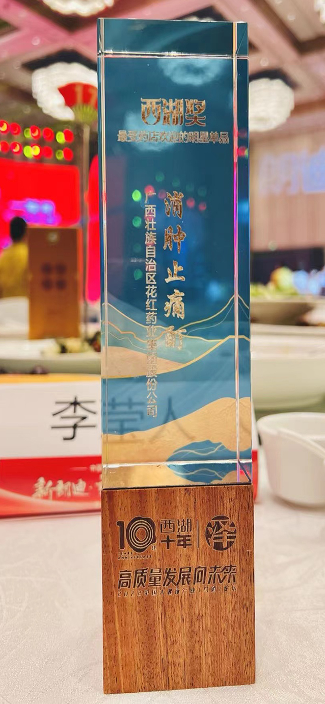 2023/04 : 花红片、消肿止痛酊再获 “西湖奖·最受药店欢迎明星单品”。