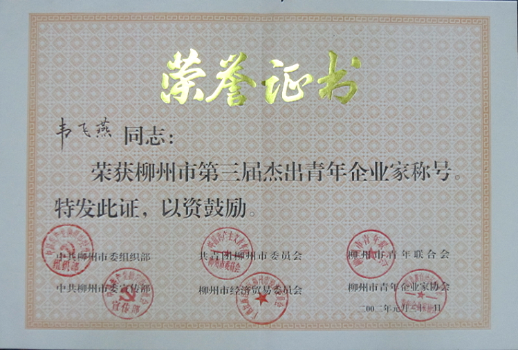 2002/01:韦飞燕厂长获得“广西十大杰出青年企业家”称号。